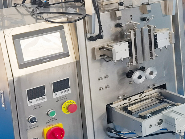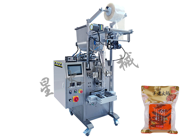 提前接通全自動小型包裝機電源,并確保電壓的穩定輸出,在小型立式辣椒醬包裝機的控制面板上,進行參數設定,尤其是定量規格、制袋長度、包裝溫度、封口時間等信息。打開U型儲料箱將所需包裝的辣椒醬備至在料箱中,蓋上蓋子注意保持辣椒醬的清潔,避免混入雜質,一切準備就緒,按下全自動小型包裝機上的控制面板啟動按鈕,機器開始運行,此時,觀察機器的運行狀態,尤其是物料的輸送是否順暢,定量是否準確,一切處于正常狀態下,可持續進行包裝工作,在出料口,將包裝好的辣椒醬依次整理、堆放,便于后續的搬運和儲存。