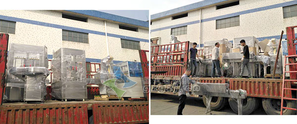 深圳市興萬家實業有限公司訂購的瓶裝調料粉灌裝生產線正在裝車
