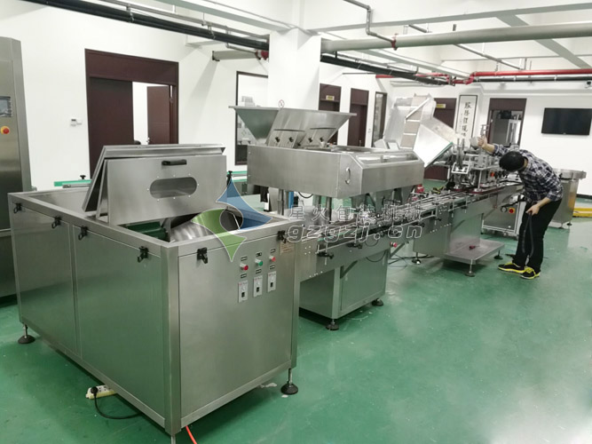 瓶裝片劑膠囊罐裝生產線-鈣片理瓶灌裝封口貼標生產線