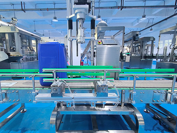 25升桶稱重灌裝生產線采用伺服控制灌裝量,精準的掌握生產量,整機運作便捷,大型定量灌裝機流水線以直線式設計模式,搭配輸送機、稱重灌裝機、上蓋機、旋蓋機等機械設備形成了流水線作業模式,通過進口PLC和觸摸屏人機控制,可適用于10-25大桶液體物料的精準灌裝,25升桶稱重灌裝生產線可用于日化、醫藥、食品、農藥等各個行業內的物料灌裝。