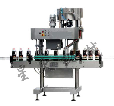 XH-160B型全自動(dòng)直列式壓蓋機(jī)是我公司較新改進(jìn)的一種新型壓蓋機(jī)。該機(jī)外觀美觀大方、靈巧、壓蓋速度快,合格率高,可適用于食品、飲料等行業(yè)的不同瓶形的壓蓋。四臺(tái)調(diào)速電機(jī)分別用于供蓋、夾瓶、傳送、壓蓋,機(jī)器自動(dòng)化程度高,穩(wěn)定性好,調(diào)節(jié)方便、更換瓶型或蓋時(shí)無需備件,只需作調(diào)整即可完成(如配上蓋機(jī),可進(jìn)行自動(dòng)上蓋)。
